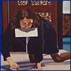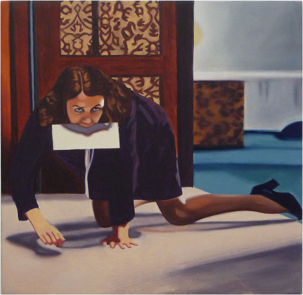 One of the great unsung heroes of rock history is Corinne “Coco” Schwab. Coco has been David Bowie’s personal assistant since 1973, after answering an ad in the Evening Standard in London looking for a “Girl Friday”. She is still his assistant and great friend, having seen him through every phase of his adult life. I have made paintings of every photo I could find of the elusive Coco, along with paintings of the other great secretaries and assistants of pop culture, and also cast myself in two supporting roles familiar to sci-fi fans.
