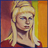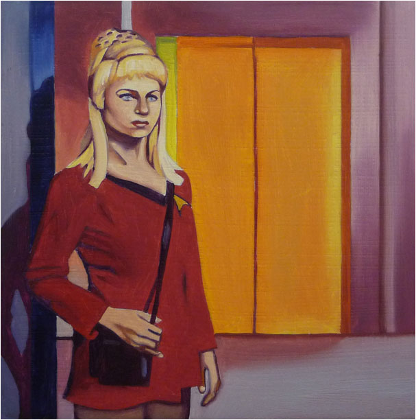 One of the great unsung heroes of rock history is Corinne “Coco” Schwab. Coco has been David Bowie’s personal assistant since 1973, after answering an ad in the Evening Standard in London looking for a “Girl Friday”. She is still his assistant and great friend, having seen him through every phase of his adult life. I have made paintings of every photo I could find of the elusive Coco, along with paintings of the other great secretaries and assistants of pop culture, and also cast myself in two supporting roles familiar to sci-fi fans.